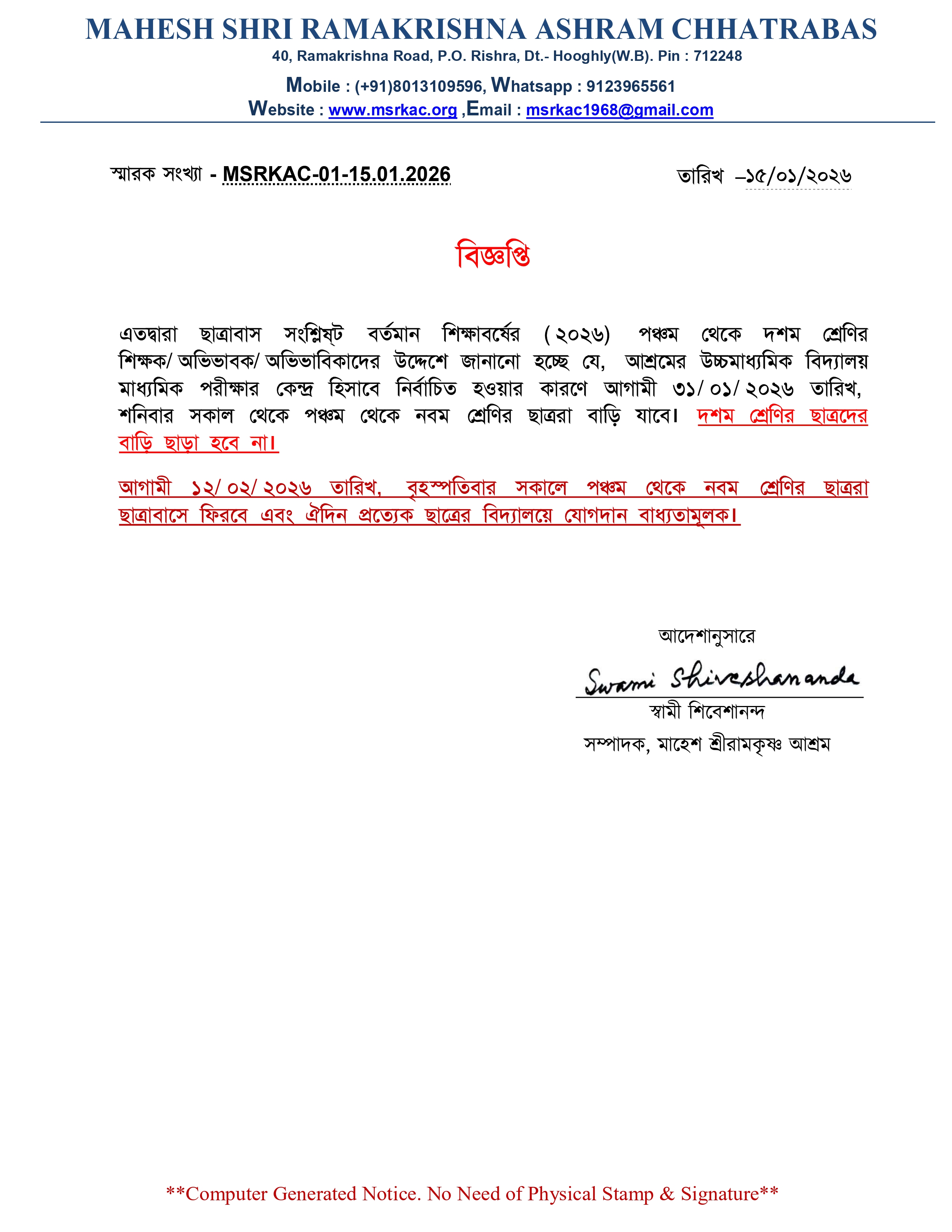 HOSTEL TEST SCHEDULE 2023